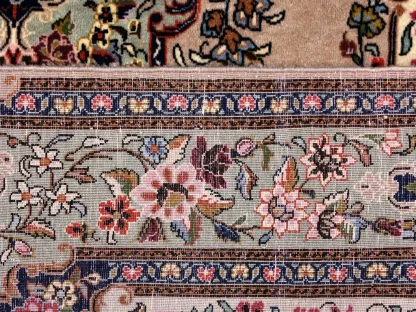 The use of traditional and natural colors on delicate wool called Kurk has made this Persian carpet very shiny, soft, and delicate, and it gives an extraordinary feeling of comfort when it comes in contact with the skin of the hands or feet. Also, the natural and organic materials used in this carpet have non-allergenic properties.