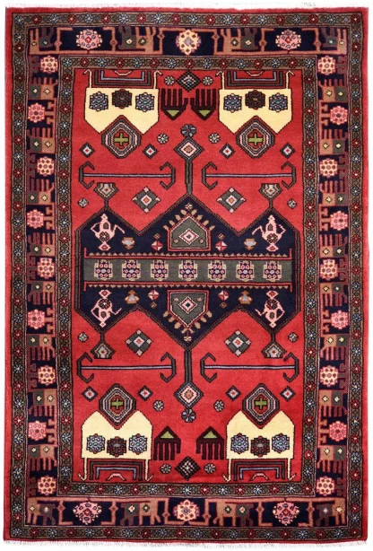 Nomadic carpets are hand-woven by nomads and are mostly woven in small sizes due to the necessities of life and special migration conditions. Unlike rural and urban carpets, nomadic carpet weaving machines (Looms) are horizontal and have a very simple construction. Nomadic carpets are thicker and the pile in them is woven with natural wool of sheep, goat, and camel. Tribal weavers artistically perform patterns such as flowers and plants, tools and accessories, animals and birds that can be seen in their surroundings, on their handicrafts. Nomadic rugs have very simple patterns with attractive unique colors and their design is often asymmetrical. The use of geometric patterns to depict animals, flowers is very common in these carpets. If one can translate the symbols and motifs of nomadic carpets, it reveals many facts about the past, culture, and environments of weavers.