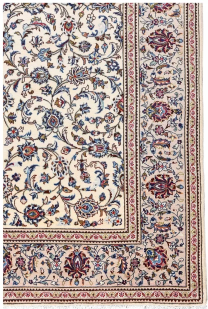 Ivory Cream Kashan rug, Bright Kashan carpet, Beige Persian carpet for sale.